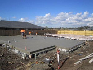 1.6.12 – The Slab was poured yesterday on Unit 2 and Unit 1 is formed up ready to go. See photos below of the concreters working on finishing the slab on Unit 2 and the “Waffle Pods” (polystyrene foam blocks) used in the engineering of the slab. Once the Slab is complete, our builder will send through their first progress claim.